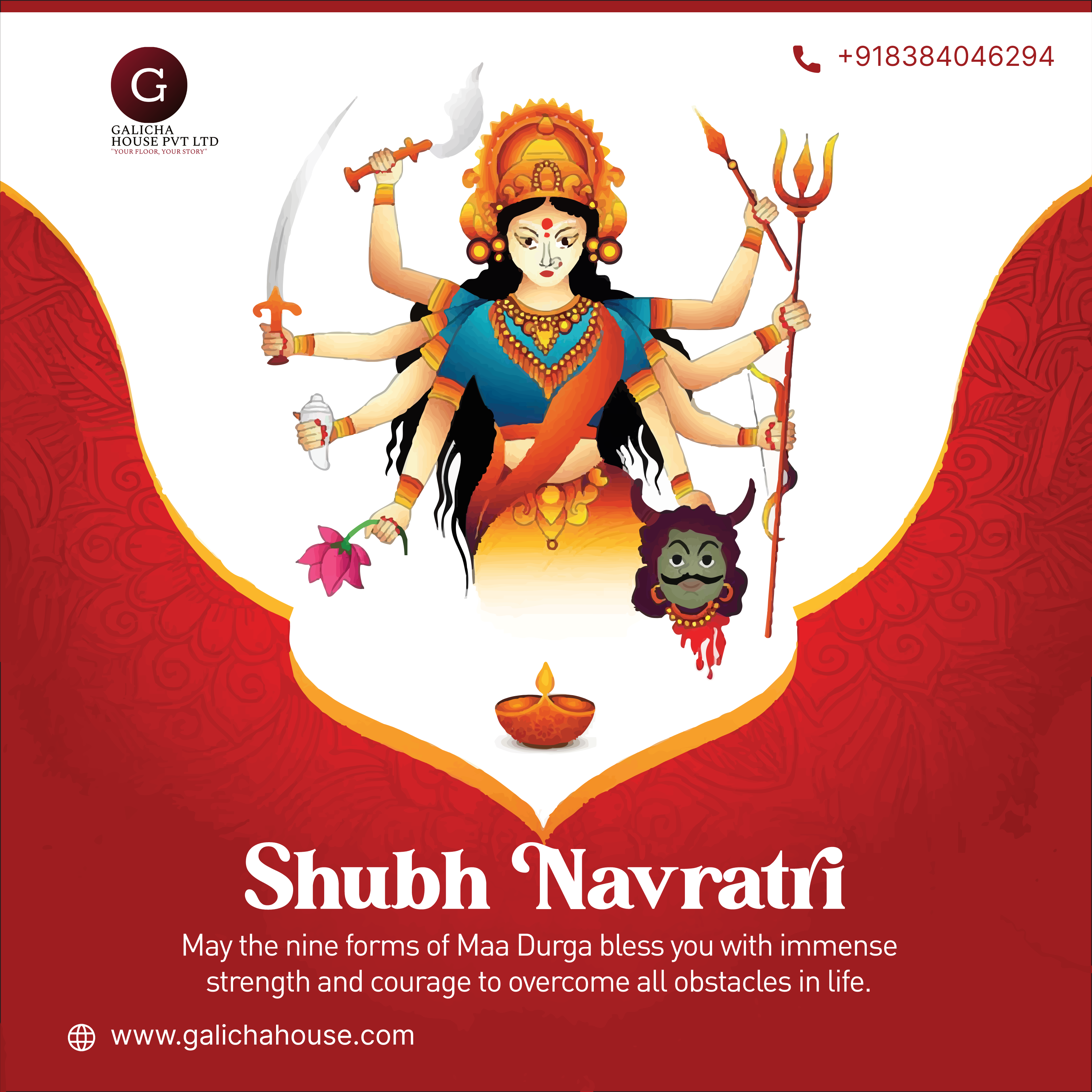 πΈπͺ Shubh Navratri! May Maa Durga bless you with strength, wisdom, and prosperity. May these nine nights bring positivity and happiness into your life. β¨